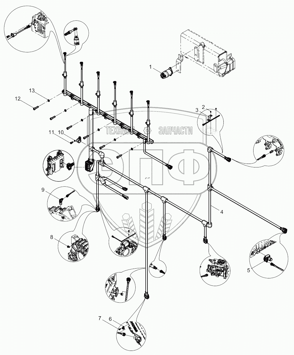 Каталог запасных частей к технике: Weichai WP10 DHL10Q0213. Electronic Control System Harness Group