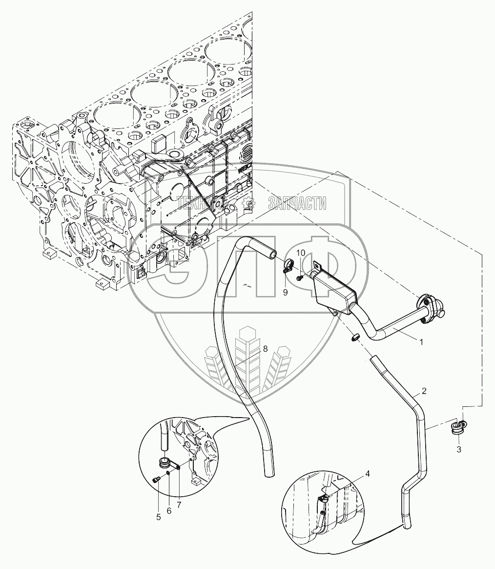 Каталог запасных частей к технике: Weichai WP10NG DHP10Q1667. Oil-gas Separator Group