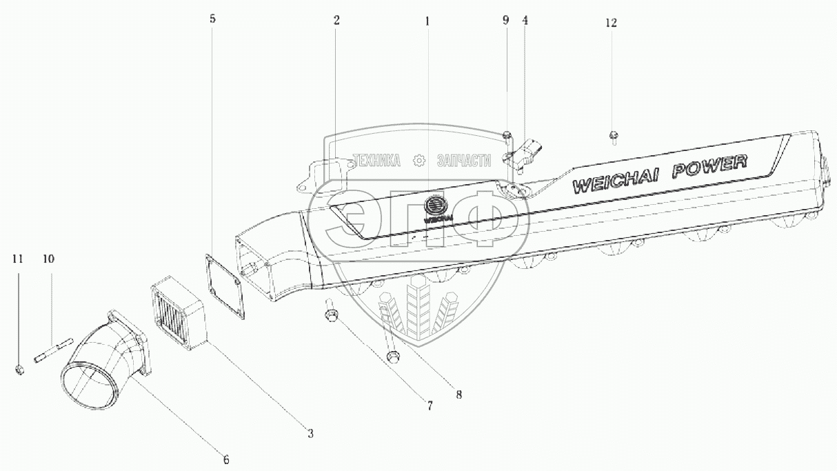 Каталог запасных частей к технике: Weichai WP12 (Евро 3). Впускная система