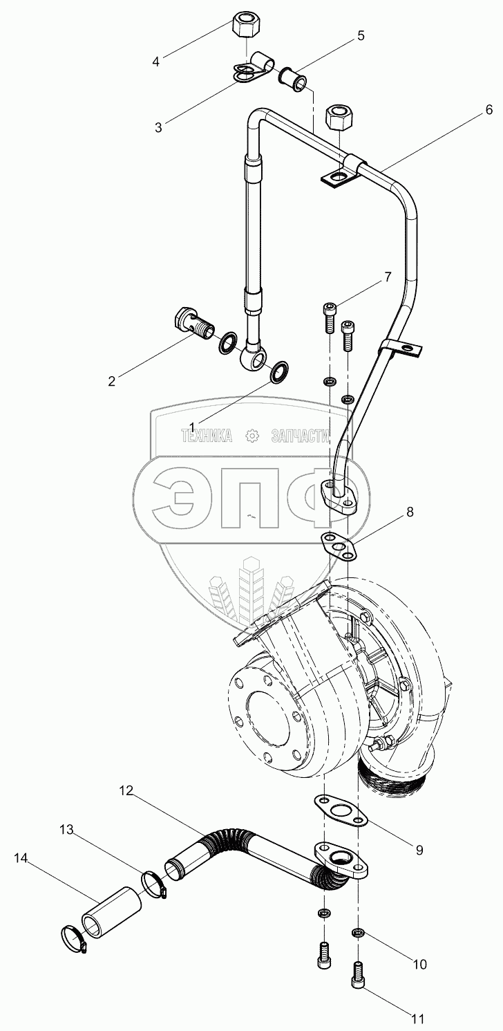 Каталог запасных частей к технике: Weichai WP6D132E200. Turbocharger Oil pipe Group