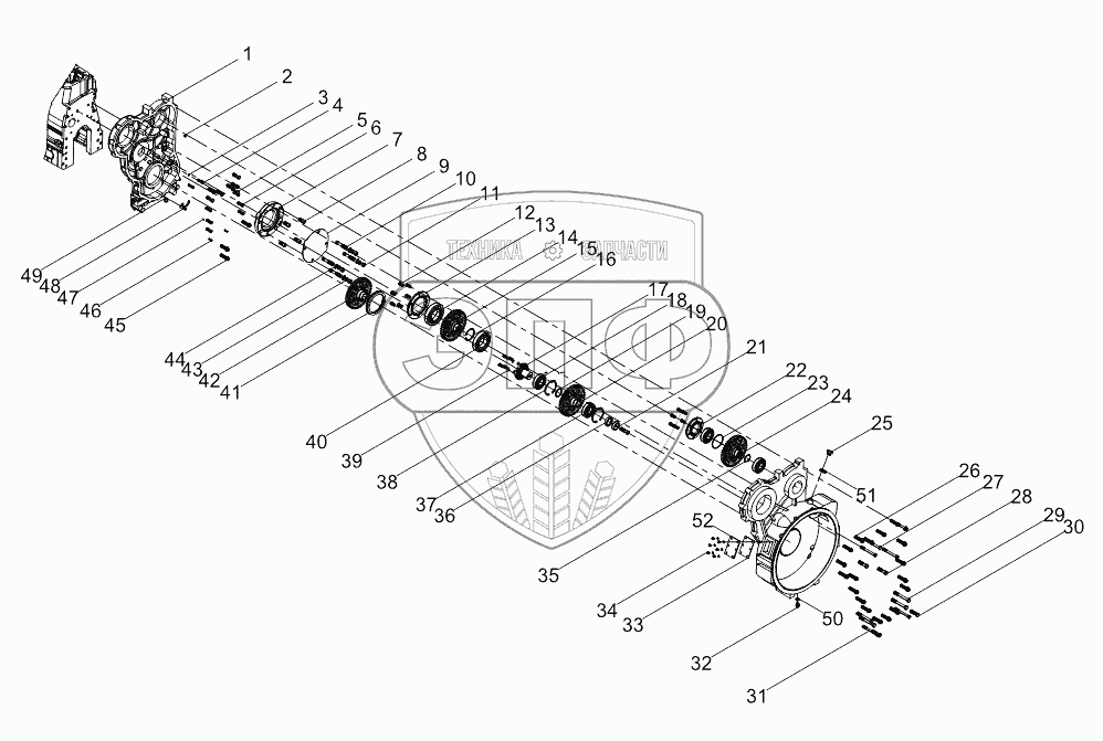 Каталог запасных частей к технике: Weichai WP6G125E22. Transfer case assembly