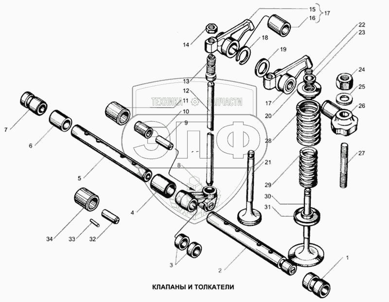 Каталог запасных частей к технике: ЯМЗ-236 ДК и ЯМЗ 238 АК. Клапаны и толкатели