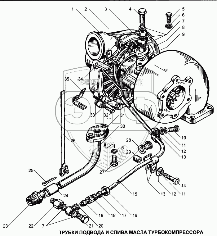 Каталог запасных частей к технике: ЯМЗ-236 НЕ, 236 БЕ, 7601.10. Трубки подвода и слива масла турбокомпрессора