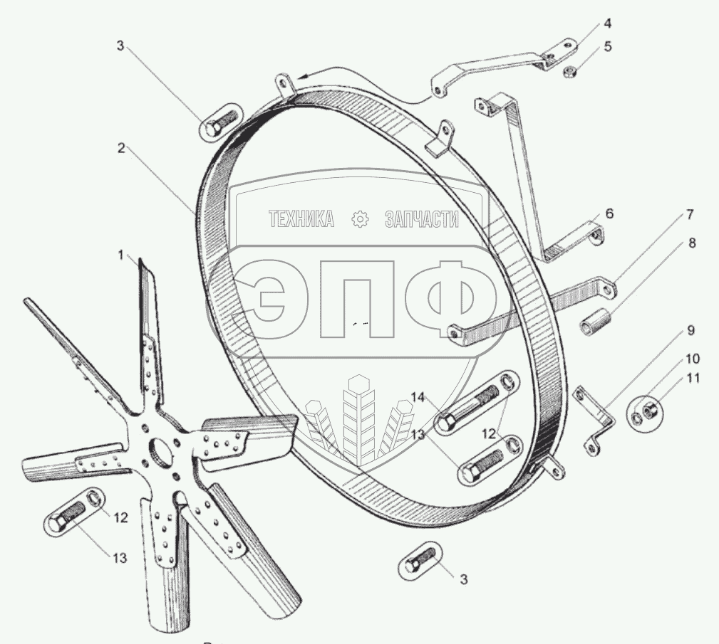 Каталог запасных частей к технике: ЯМЗ-236М2. Вентилятор и кожух вентилятора