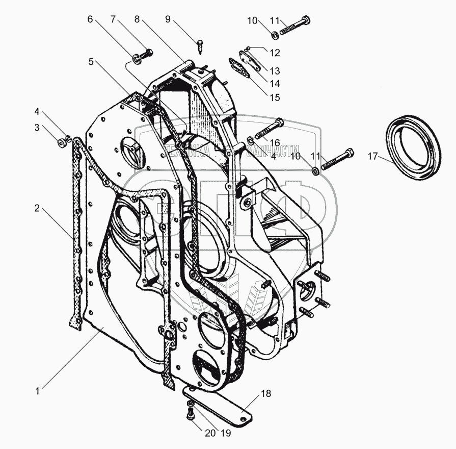 Каталог запасных частей к технике: ЯМЗ-240. Картер маховика ЯМЗ-240М2