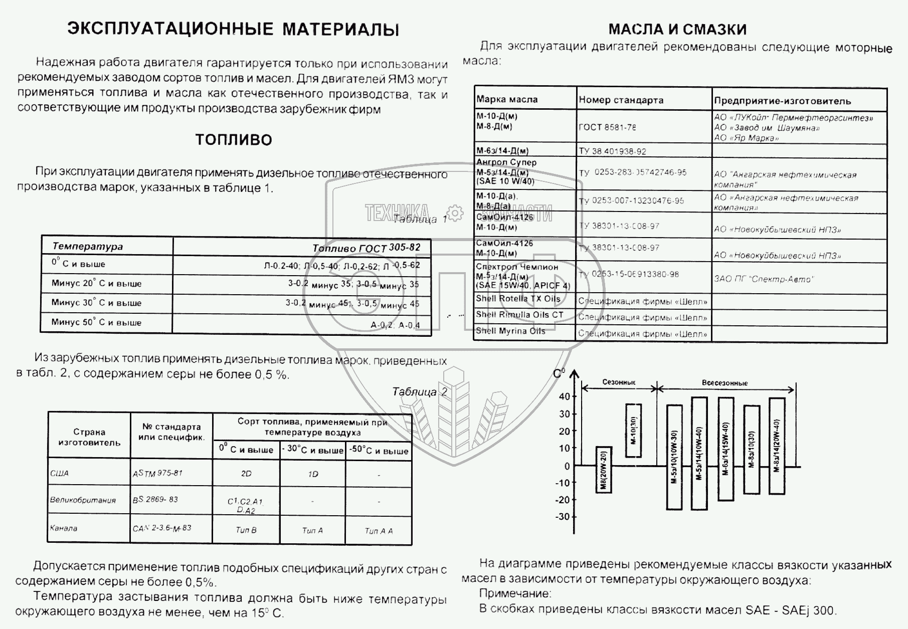 Каталог запасных частей к технике: ЯМЗ-7511. Эксплуатационные материалы, топливо, масла и смазки