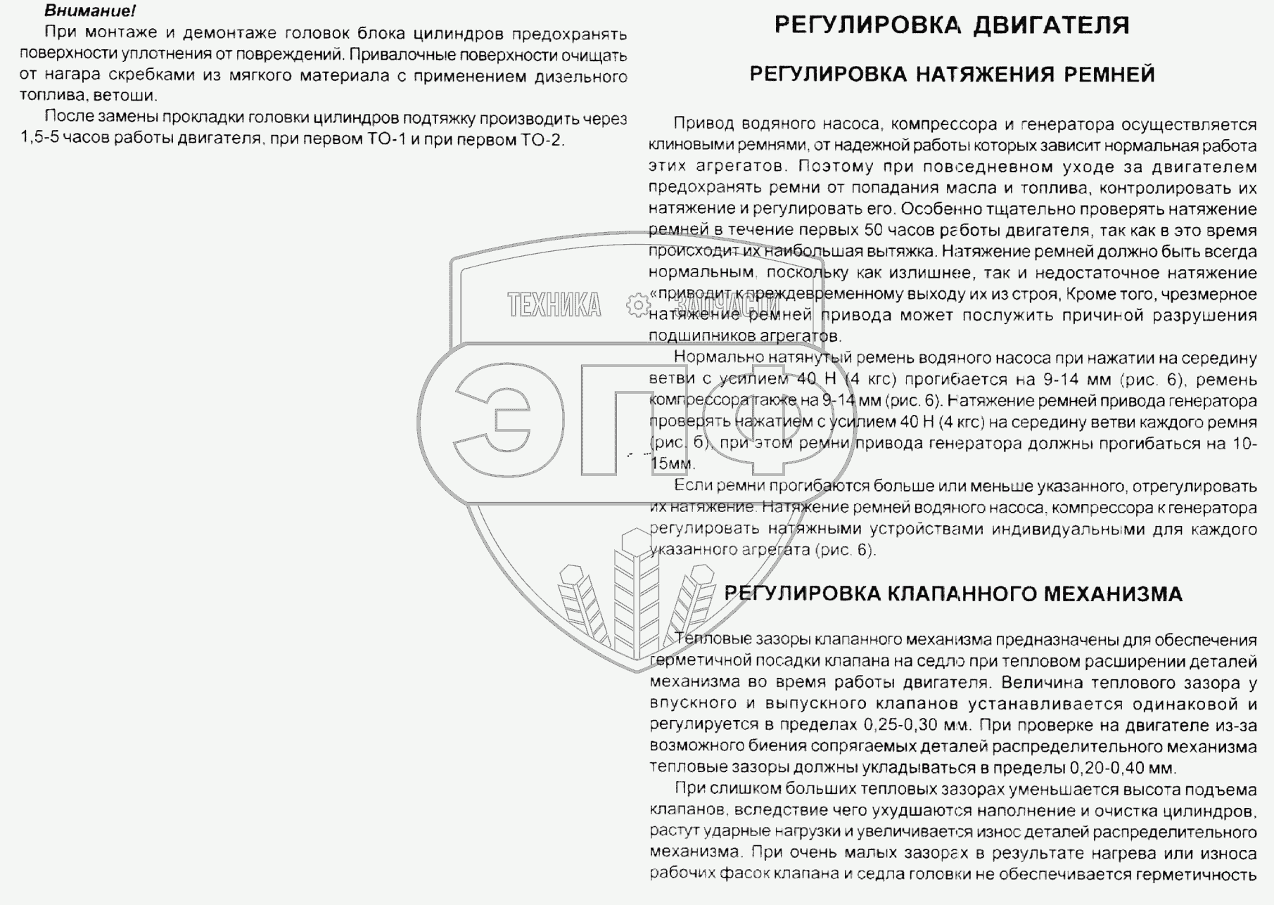 Каталог запасных частей к технике: ЯМЗ-7511. Техническое обслуживание. Регулировка двигателя