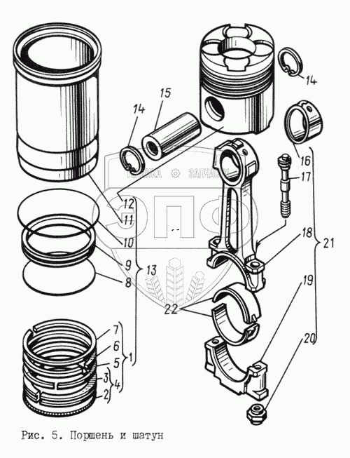 Каталог запасных частей к технике: ЯМЗ-8401.10. Поршень и шатун