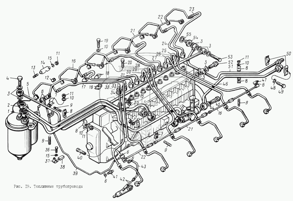 Каталог запасных частей к технике: ЯМЗ-8401.10. Топливные трубопроводы