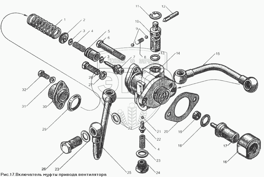 Каталог запасных частей к технике: ЯМЗ-850. Включатель муфты привода вентилятора