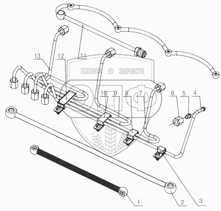 | 1 | 6105Q-1104100B, C | Fuel injection pump feed line assembly | Нет на складе | |