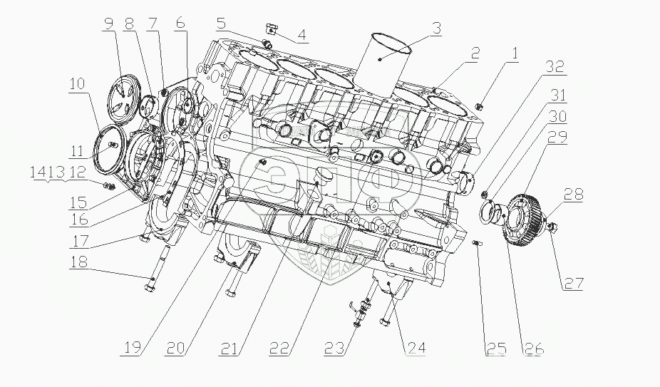 Каталог запасных частей к технике: Yuchai YC6G260N-20 (G64HA). G4700-1002010 Часть блока цилиндров