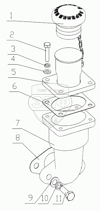 Каталог запасных частей к технике: Yuchai YC6J125Z-T22. 311-1014000/05 Breather Parts