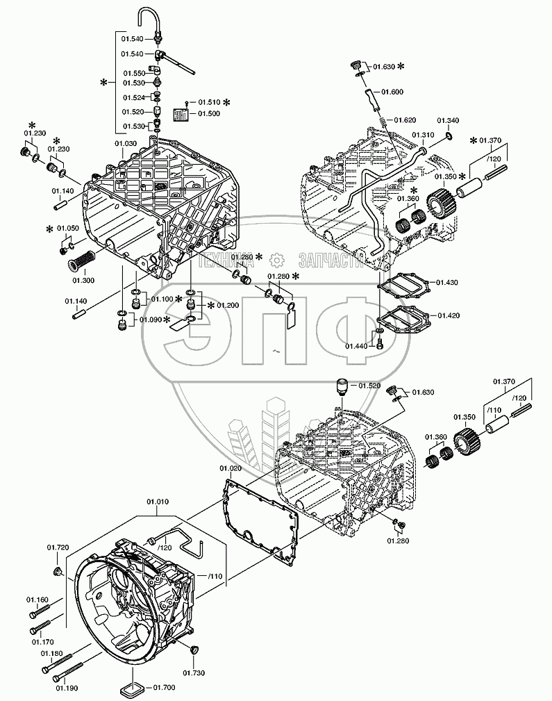 Каталог запасных частей к технике: ZF КПП ZF 16S151 (вар.). GEARBOX HOUSING