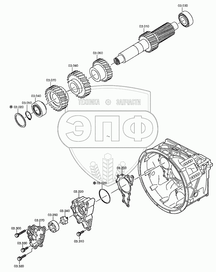 Каталог запасных частей к технике: ZF КПП ZF 16S151 (вар.). LAYSHAFT