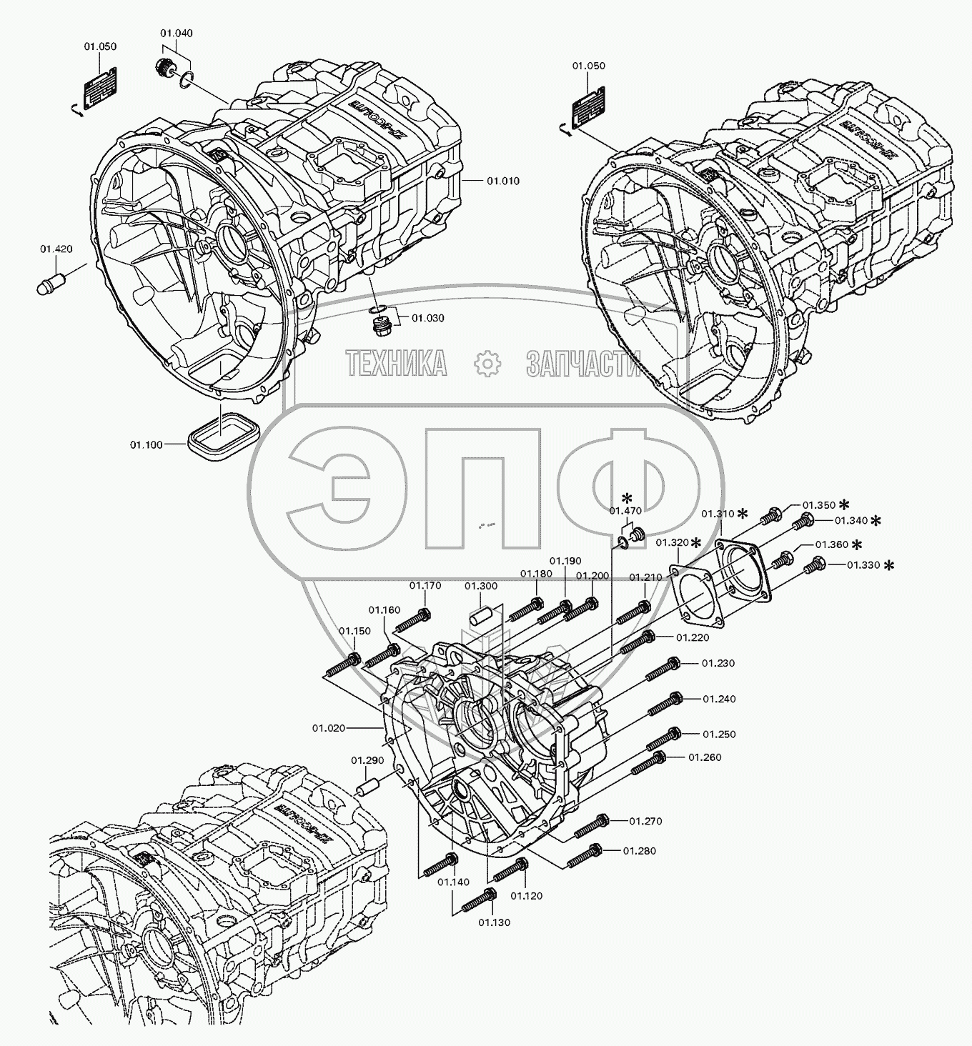 Каталог запасных частей к технике: ZF КПП ZF 6S1000TO. Картер сцепления