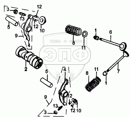 Каталог запасных частей к технике: ЗиД Двигатель 1P39FMB-В. Кулочковый вал и клапаны