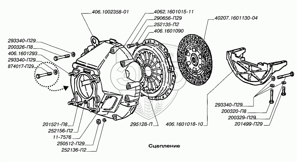 Каталог запасных частей к технике: ЗМЗ-4062.10. Сцепление
