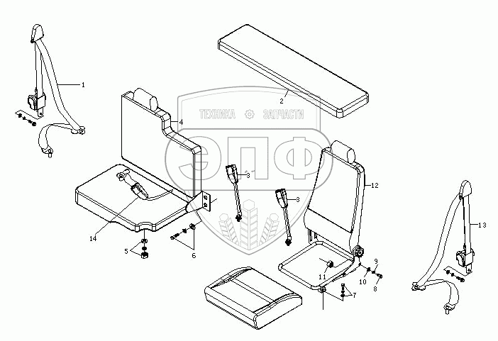 Каталог запасных частей к технике: BAW BJ 1044/1065. Сиденья и ремни безопасности