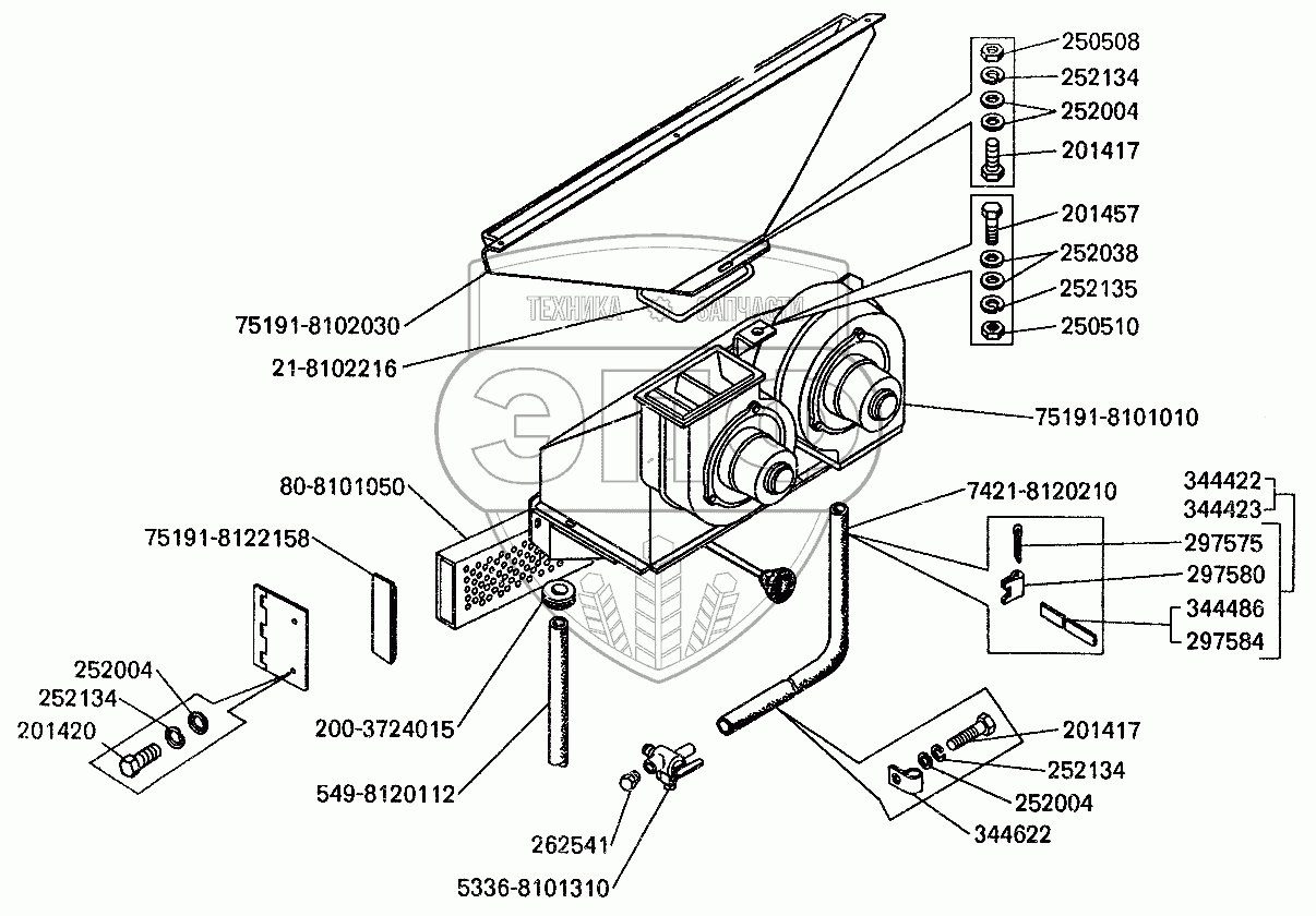 Каталог запасных частей к технике: БелАЗ-7512. Отопитель кабины и его установка