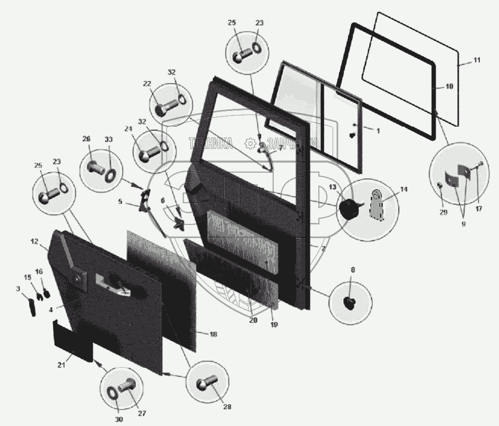 Каталог запасных частей к технике: БелАЗ-75131. Дверь кабины