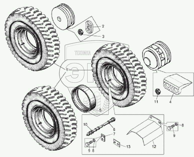 Каталог запасных частей к технике: БелАЗ-75131. Колеса и детали их крепления