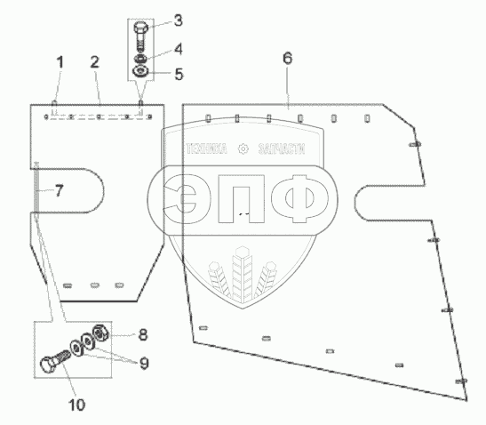 Каталог запасных частей к технике: БелАЗ-75131. Установка брызговиков двигателя
