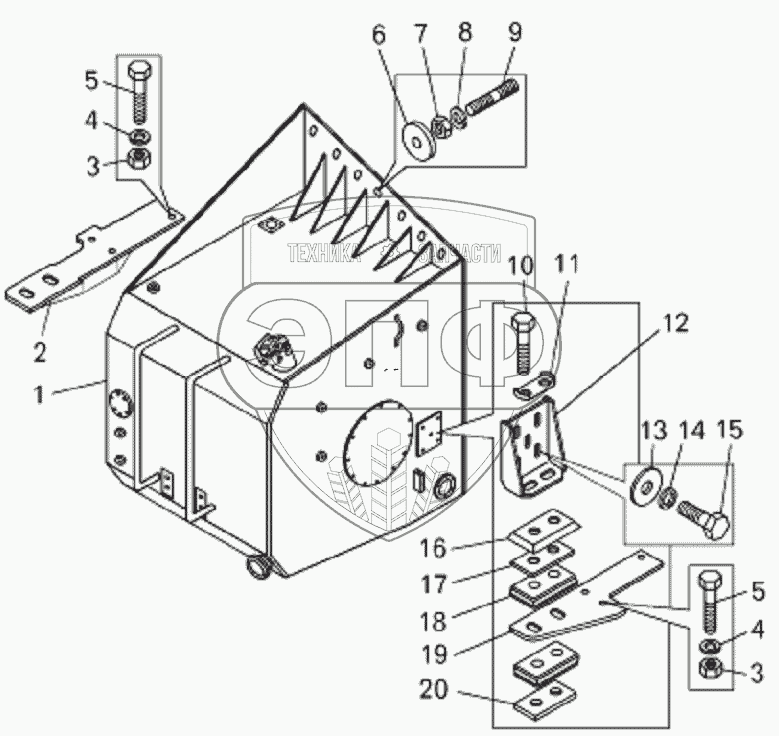 Каталог запасных частей к технике: БелАЗ-75131. Установка топливного бака