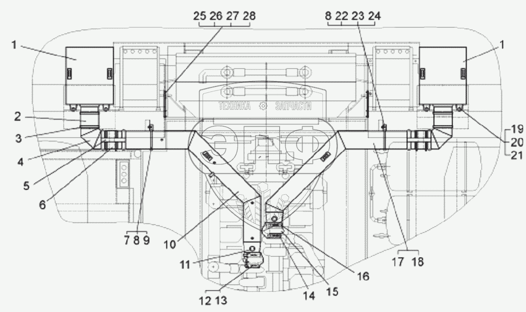 Каталог запасных частей к технике: БелАЗ-75131. Установка воздушных фильтров