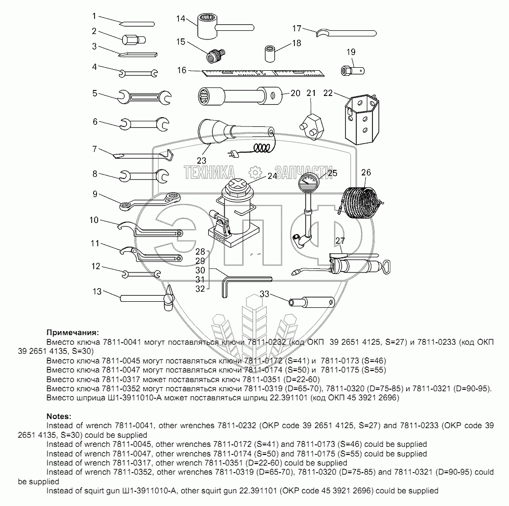 | 6 | 7811-0045 | Ключ S = 41-46 (могут поставляться ключи 7811-0172 и 7811-0173) | Нет на складе | |