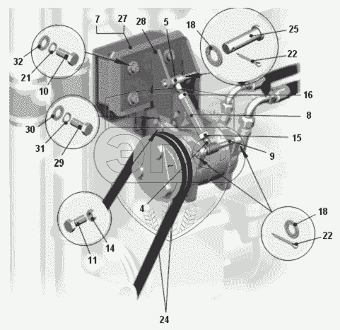 Каталог запасных частей к технике: БелАЗ-75306. Установка кронштейнов компрессора кондиционера