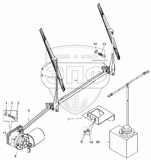 Каталог запасных частей к технике: БелАЗ-75306. Установка стеклоочистителя и стеклоомывателя
