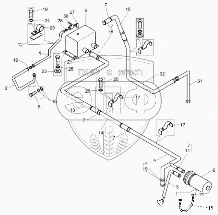 Каталог запасных частей к технике: БелАЗ-75306. Установка топливопроводов