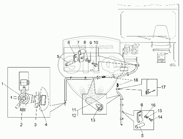 Каталог запасных частей к технике: БелАЗ-75306. Установка трубопроводов отопителя кабины