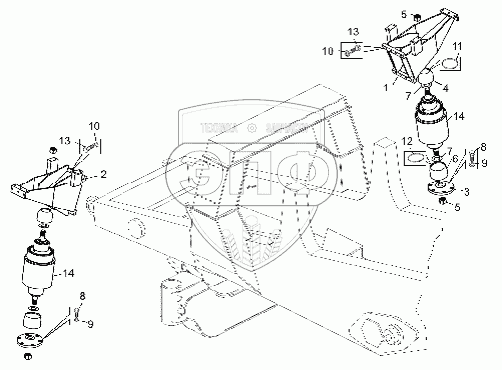 Каталог запасных частей к технике: БелАЗ-75306. Установка цилиндров передней подвески