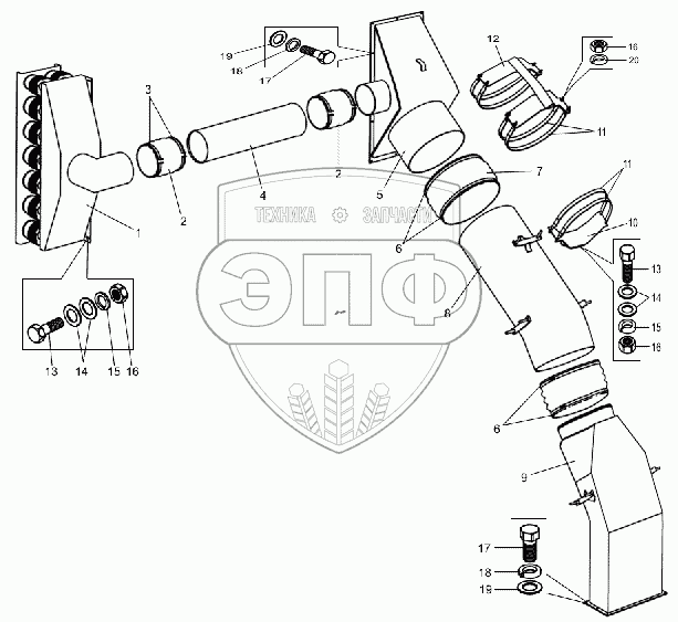 Каталог запасных частей к технике: БелАЗ-75306. Установка всасывающих воздухопроводов