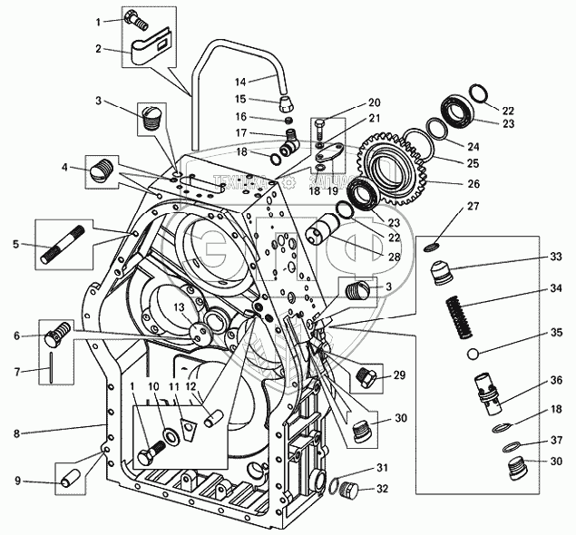 Каталог запасных частей к технике: БелАЗ-7540D. Картер гидромеханической передачи БелАЗ-7540А