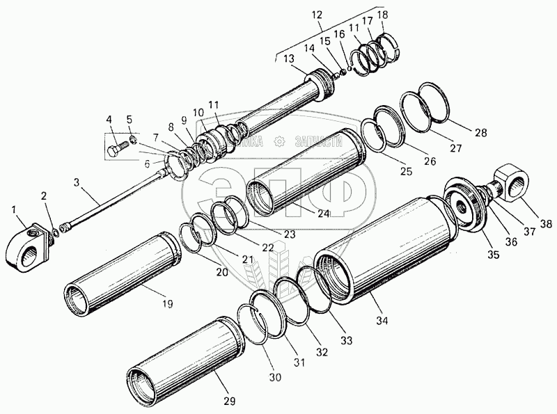 Каталог запасных частей к технике: БелАЗ-7547. Цилиндр опрокидывающего механизма