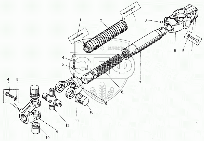 Каталог запасных частей к технике: БелАЗ-7547. Вал карданный рулевого управления
