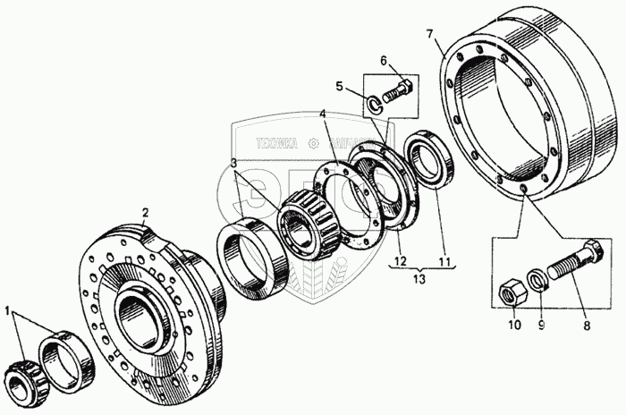 Каталог запасных частей к технике: БелАЗ-7548А. Ступица переднего колеса