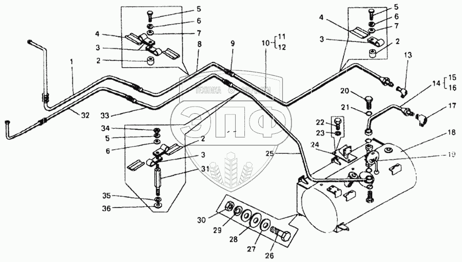 Каталог запасных частей к технике: БелАЗ-7548А. Топливные трубопроводы самосвала БелАЗ-75483