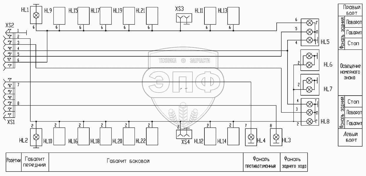 Каталог запасных частей к технике: Брянский Арсенал Полуприцеп 93384А-10. Схема электрическая принципиальная