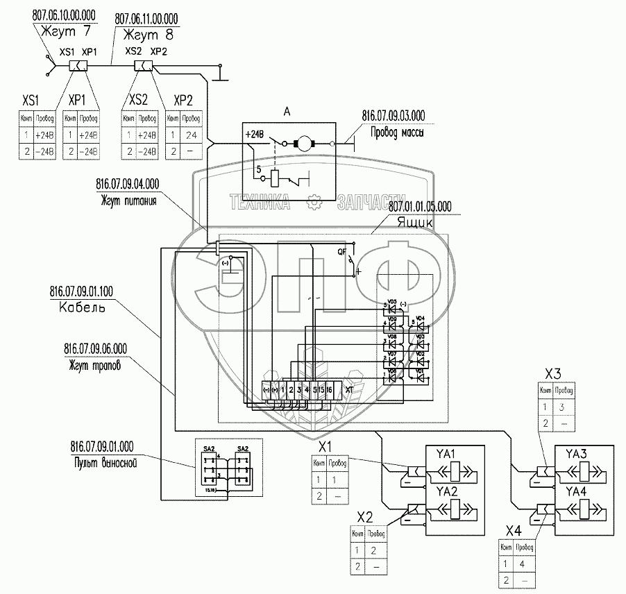 Каталог запасных частей к технике: Брянский Арсенал Полуприцеп 93384А-10. Схема электрическая соединений