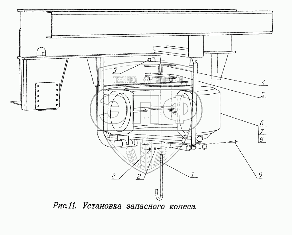 Каталог запасных частей к технике: ЧМЗАП-9906. Установка запасного колеса