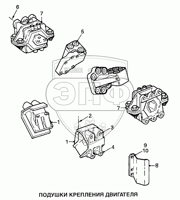 Каталог запасных частей к технике: DAF 95XF. Подушки крепления двигателя