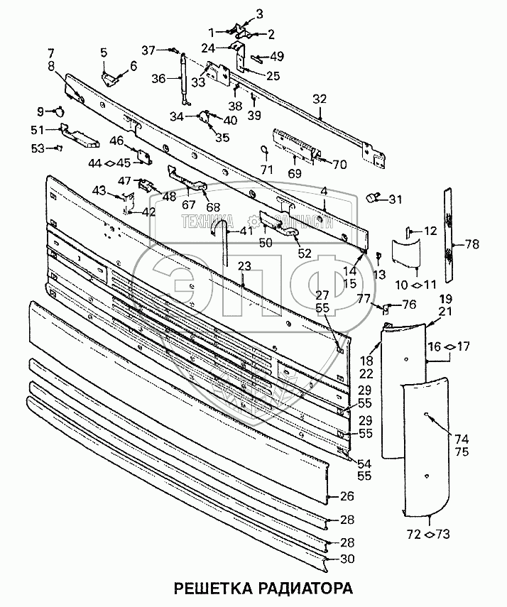 Каталог запасных частей к технике: DAF 95XF. Решетка радиатора