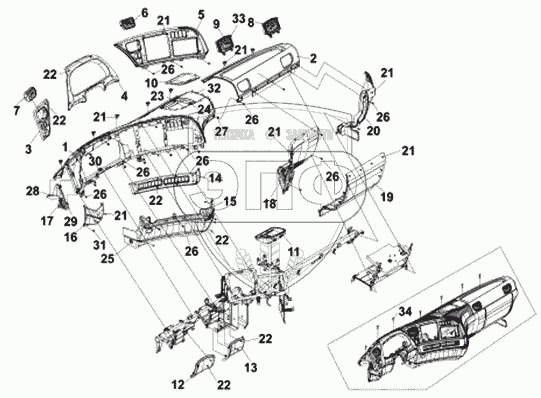 | 18 | 5305140-C0100 | Средний нижний защитный кожух панели приборов со стороны пассажира | Нет на складе | |