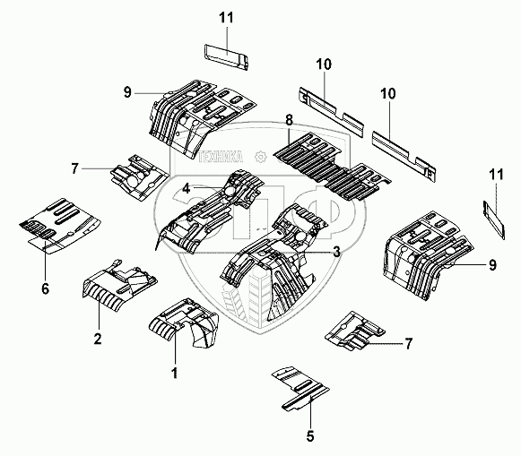 | 7 | 10108800 | Rear damper mat,floor | Нет на складе | |