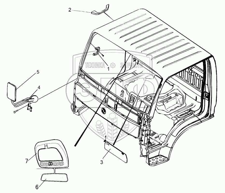Каталог запасных частей к технике: DongFeng EQ-1074. Аксессуары кабины