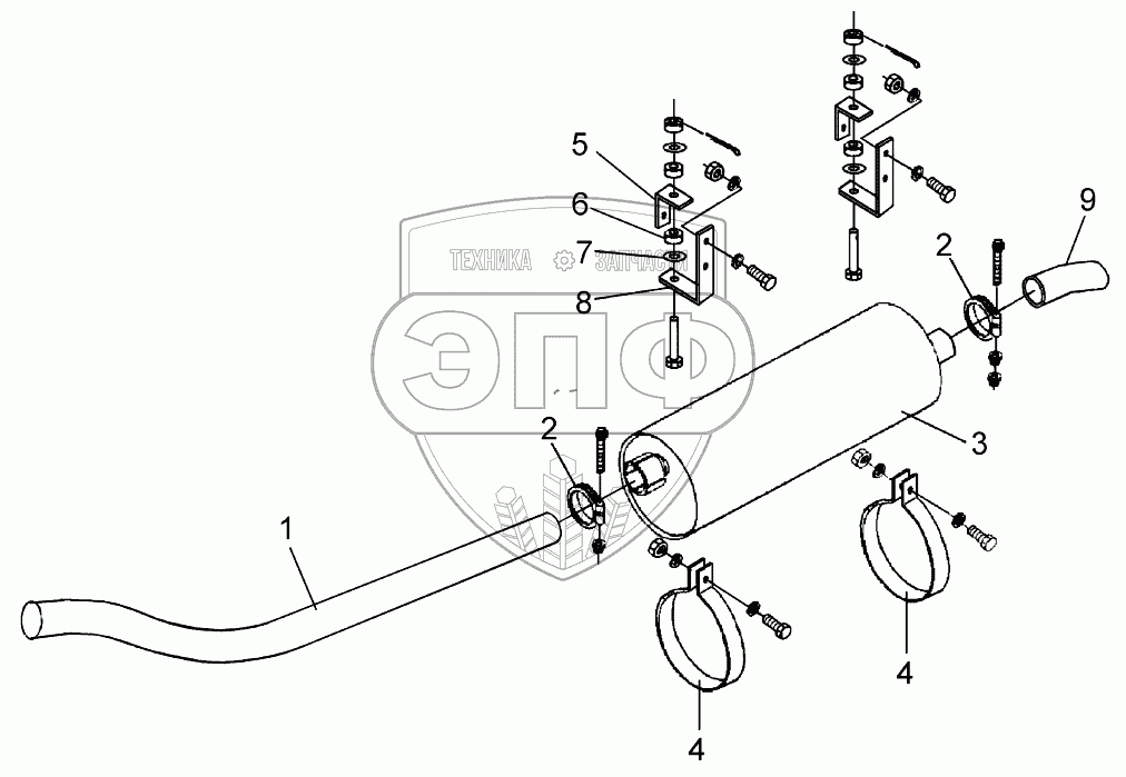Каталог запасных частей к технике: DongFeng EQ-1074. Система выпуска